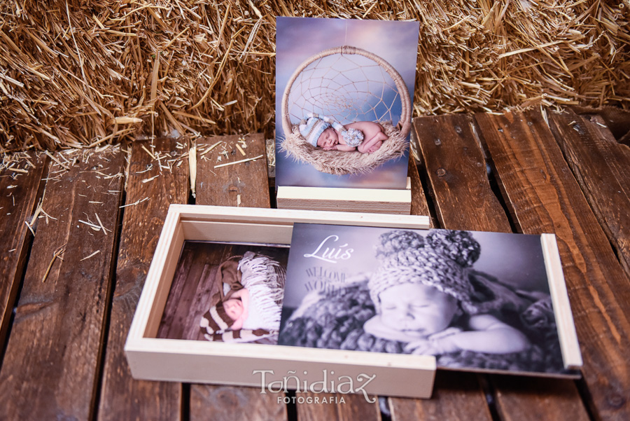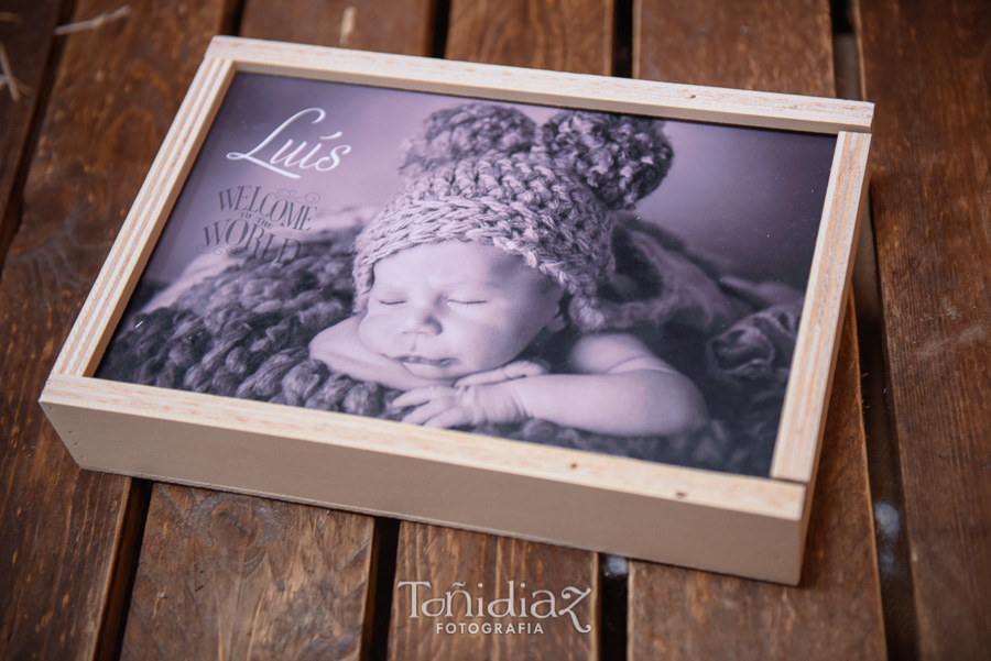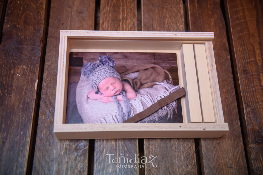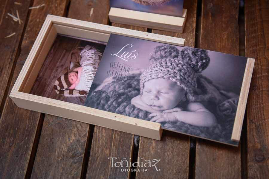Os mostramos un ejemplo de uno de los últimos trabajos de Sesión fotográfica de Recién Nacido o Newborn ya entregado, mediante una caja de madera natural para la entrega del reportaje impreso en fotografía química en 15×20 cm. con una peana de madera que tiene la función de portafoto para intercambiar la presentación de las fotos.